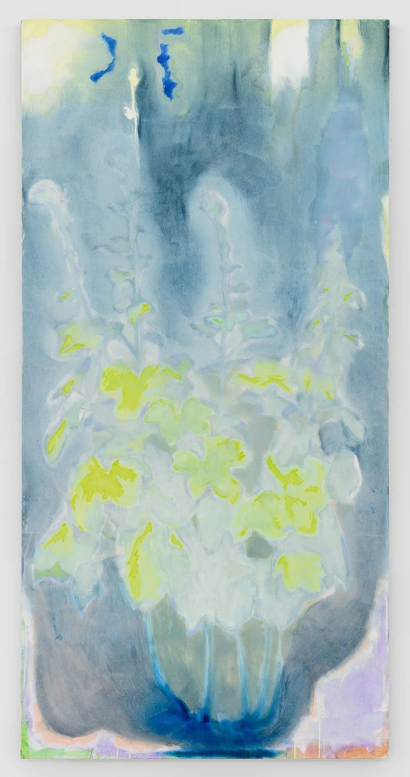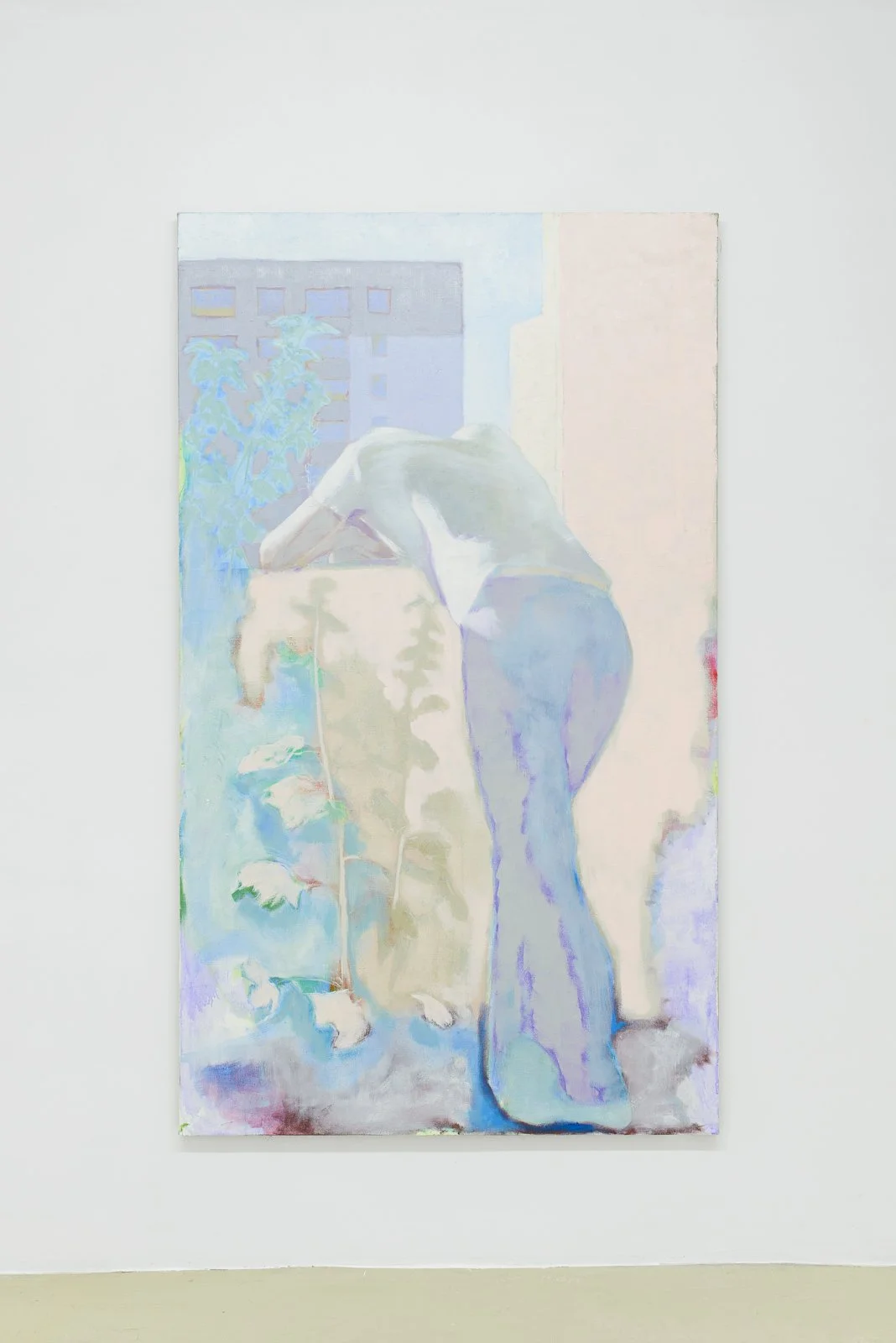 “Des roses ont poussé dans les joints du carrelage II” (2023), Simon Martin, huile et acrylique sur toile,195 x 97 cm, ©GalerieJousseEntreprise ©GrégoryCopitet