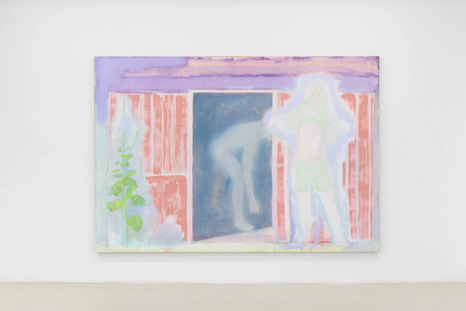 Photo: “la douche au crépuscule”(2023), Simon Martin, huile sur toile, 69 x 42 cm ©GalerieJousseEntreprise ©GrégoryCopitet